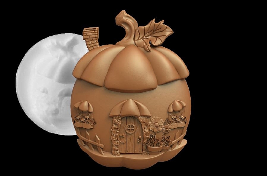 Силиконовый молд № 424 домик Тыква 2 D № 1 серия домики для гномов и фей)