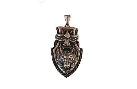 размер 4 х 2.3 см ( голова волка 1,7 см) , толщина 0,3 см