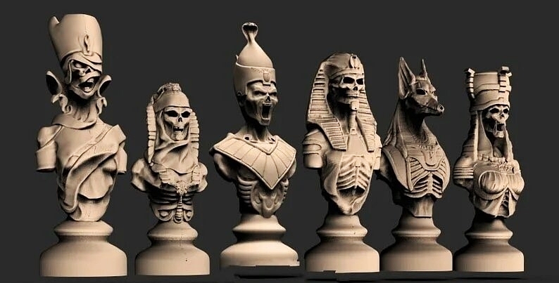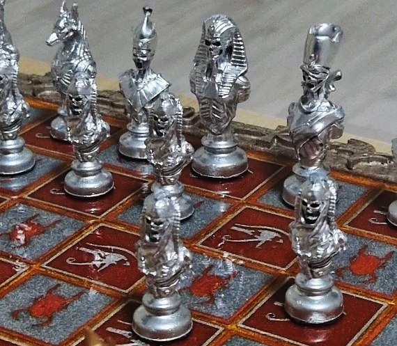 № 1 Король 5,8 см , № 2 Пешка 4,9 см , № 3 Слон 5,5 см , № 4 Ладья 5,5 см , № 5 Конь 4,7,см , № 6 Королева 5,3 см
